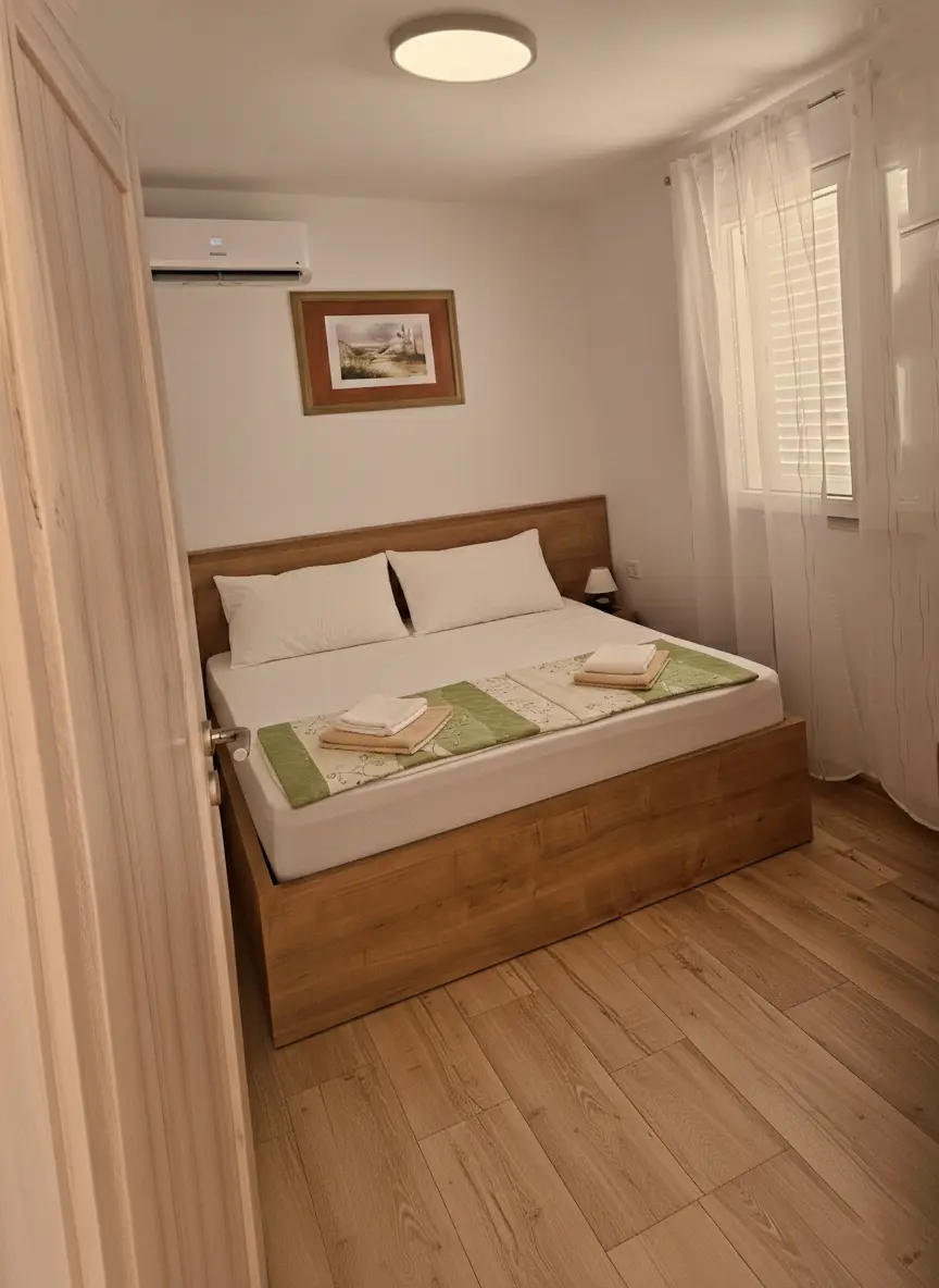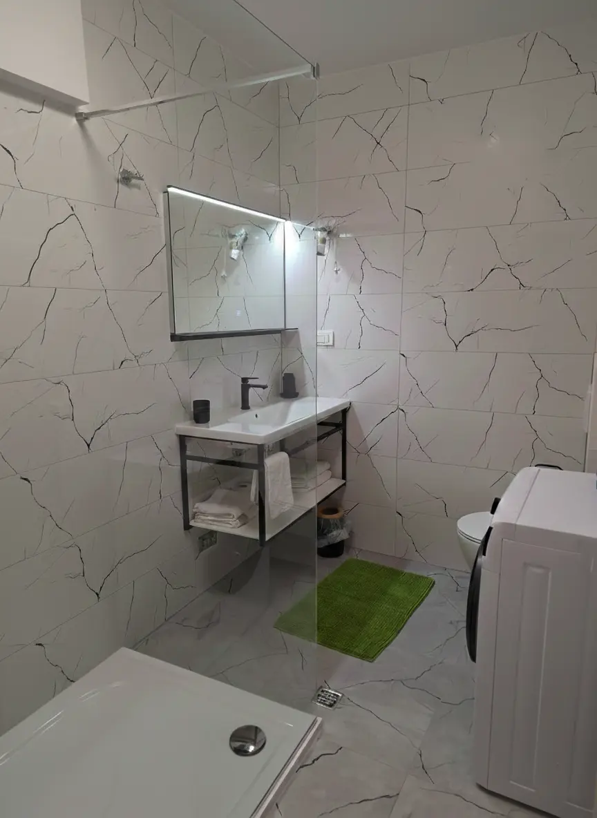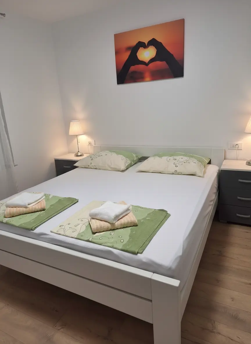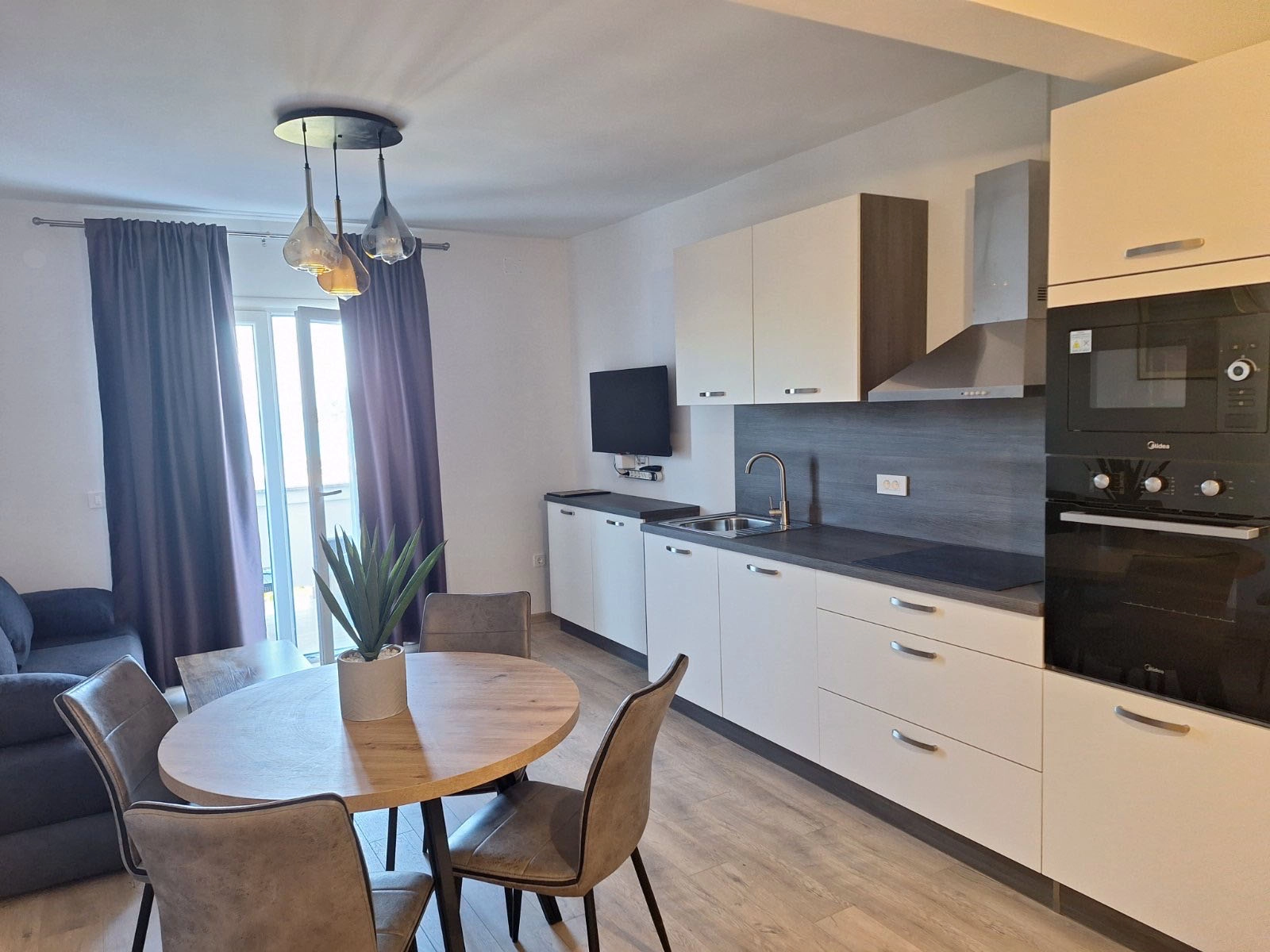 Our modern kitchen features an induction cooker, large refrigerator, dishwasher, microwave, and oven. The apartment has two separate double bedrooms, each air-conditioned and equipped with a king-size bed and digital TV. Two separate bathrooms with massage showers and a washing machine provide everything you need for a relaxing island vacation.