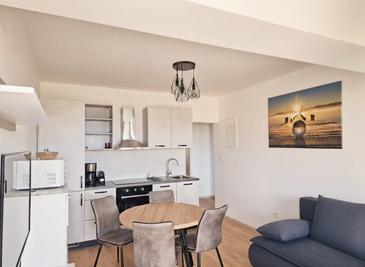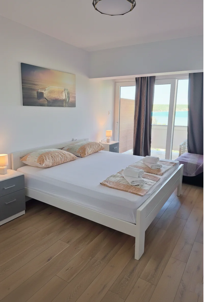 Enjoy the morning sun on your private terrace or prepare local delicacies in the fully equipped kitchen. Apartment 2 is designed to provide maximum functionality without compromising on style. With high-speed internet and comfortable workspaces, it is also ideal for digital nomads who want to work with a view of the Adriatic.